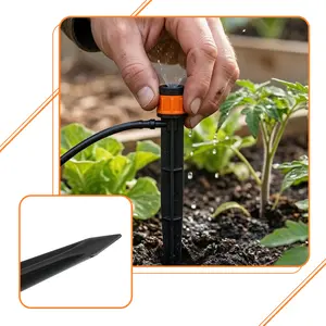 Zraszacz patykowy lini nawadniana regulowany 0-80 L/h z wyjściami na wąż 5 mm i adapterem z wkłuwką 3 mm do rury PE i wyjściem na wąż 5 mm