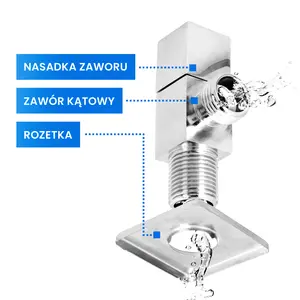 Zawór kątowy z głowicą ceramiczną kwadrat 1/2'' GZ x 1/2'' GZ