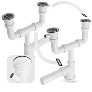 Syfon zlewu dwukomorowego 50 mm plastik z przelewem i metalowym sitkiem