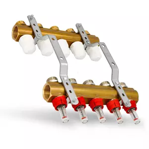 Rozdzielacz CO mosiężne do podłogówki 50 - uzbrojony 5 obwody