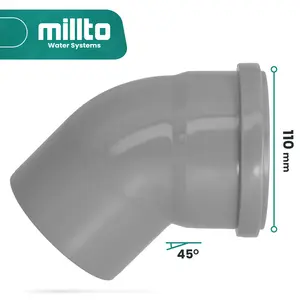 Kolano kanalizacyjne 110 mm x 110 mm 45º szare