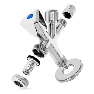 Zawór kątowy Kombi grzybkowy 1/2'' GZ x 3/4'' GZ x 3/8'' GZ z złączką na wąż 3/4'' GZ x 1/2'' W i rozetą 3/8''