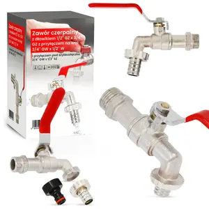 Zawór czerpalny z dławikiem 1/2'' GZ x 3/4'' GZ z przyłączem na wąż 3/4'' GW x 1/2'' W i przyłączem pod szybkozłączke 3/4'' GW x 1/2'' SZ