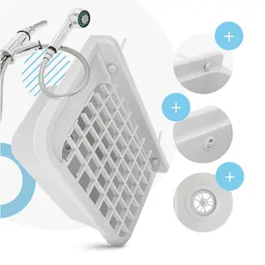 Komora gospodarcza z półką 50 cm x 34 cm x 21 cm i kratką 36 cm x 30 cm biały i baterią z wyciąganym natryskiem