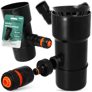 Odzyskiwacz wody deszczowej 90 mm x 1'' GZ czarny z przyłączem pod szybkozłączke 1'' GW x SZ i szybkozłączka 1/2'' W x SZ