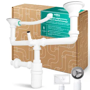 Komplet odpływowy zlewozmywaka 2-komorowego z syfonem butelkowym 6/4'' x 40 mm, przyłączem, przelewem i spustem z metalowym sitkiem 90 mm x 6/4''