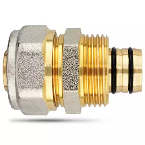 Rozdzielacz CO mosiężne do podłogówki 50 - uzbrojony (odpowietrzniki automatyczne, trójniki, zawory spustowe) 2 obwody
