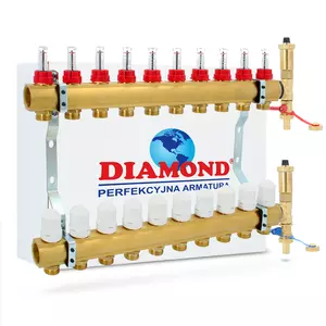 Rozdzielacz do podłogówki mosiężny z zestawem odpowietrzającym 10 obwodów