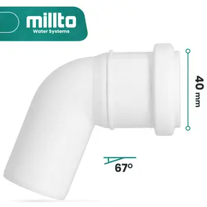 Kolano kanalizacyjne 40 mm x 40 mm 67º białe