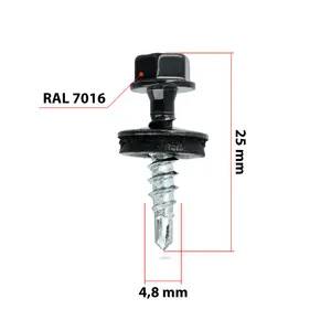 Wkręty farmerskie samowiercące z podkładką EPDM 4,8 x 25 mm grafitowe ciemne RAL 7016