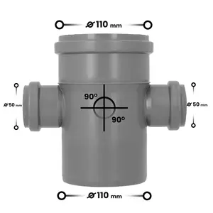 Czwórnik kanalizacyjny 110 mm x 50 mm x 110 mm x 50 mm 90º szary