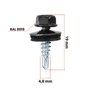 Wkręty farmerskie samowiercące "Zszywki" do mocowania blach z podkładką EPDM 4,8 x 19 mm brązowy ciemny