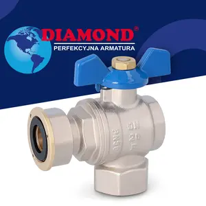 Zawór kulowy kątowy motylkowy z dławikiem 10 bar i półśrubunkiem 3/4'' GW x 3/4'' GW