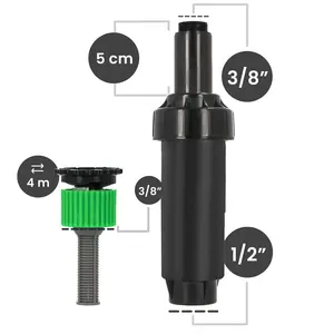 Zraszacz wynurzalny 5 cm 1/2'' GW x 3/8'' GZ z dyszą regulowaną 0-360° / 4 m 3/8'' GW