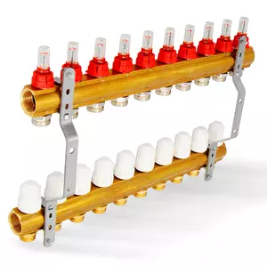 Rozdzielacz CO mosiężne do podłogówki 50 - uzbrojony 10 obwody