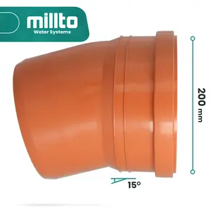 Kolano kanalizacyjne 200 mm x 200 mm 15º pomarańczowe