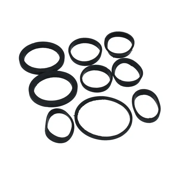 Komplet naprawczy syfonu zlewu to zestaw 5 lub 9 uszczelek (w zależności od wyboru pojedynczego lub podwójnego wariantu).