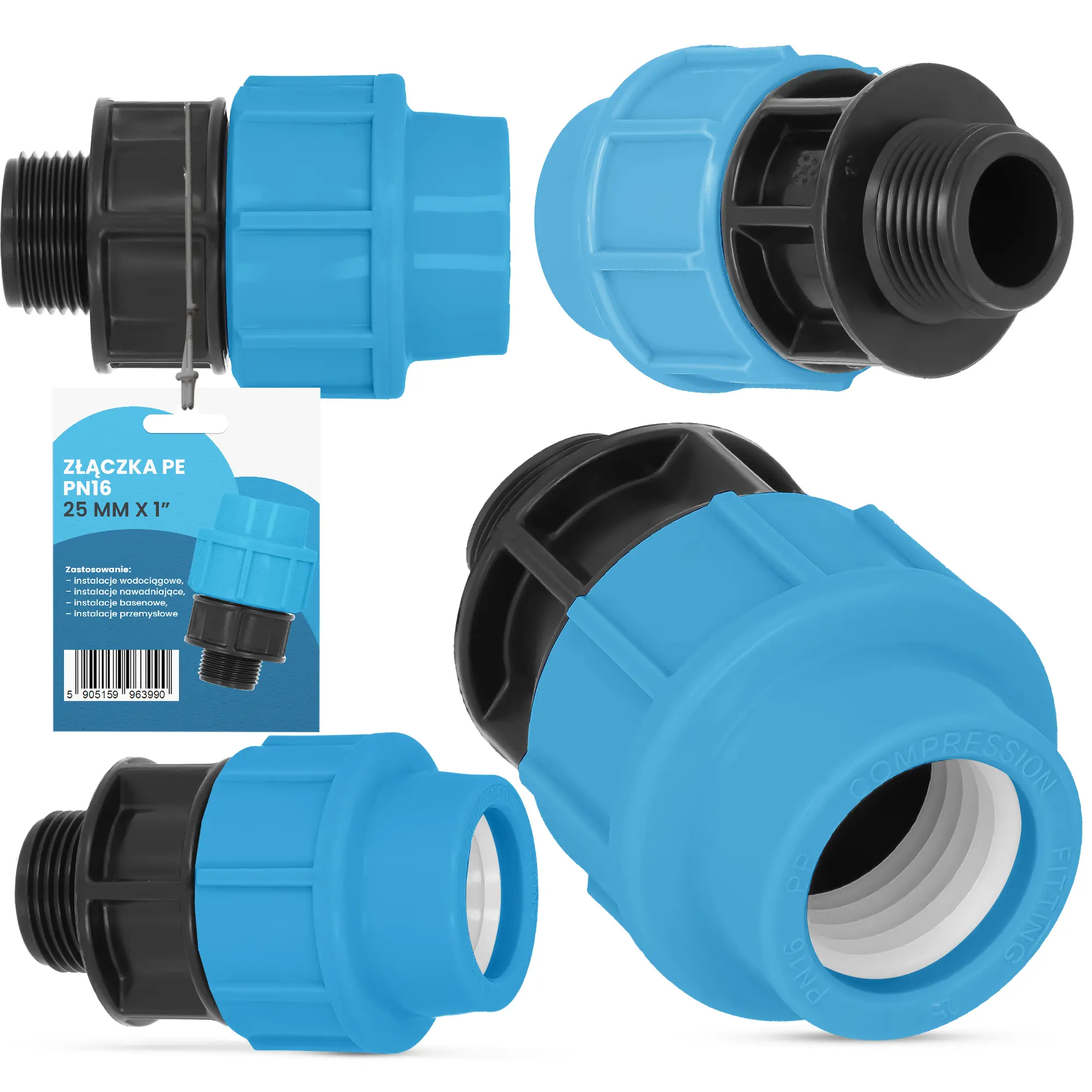 Złączka PE to niezbędny element instalacji wodnych oraz nawadniających. Produkt jest wyjątkowo uniwersalny, dzięki czemu można montować go zarówno w systemach naziemnych, jak i podziemnych.