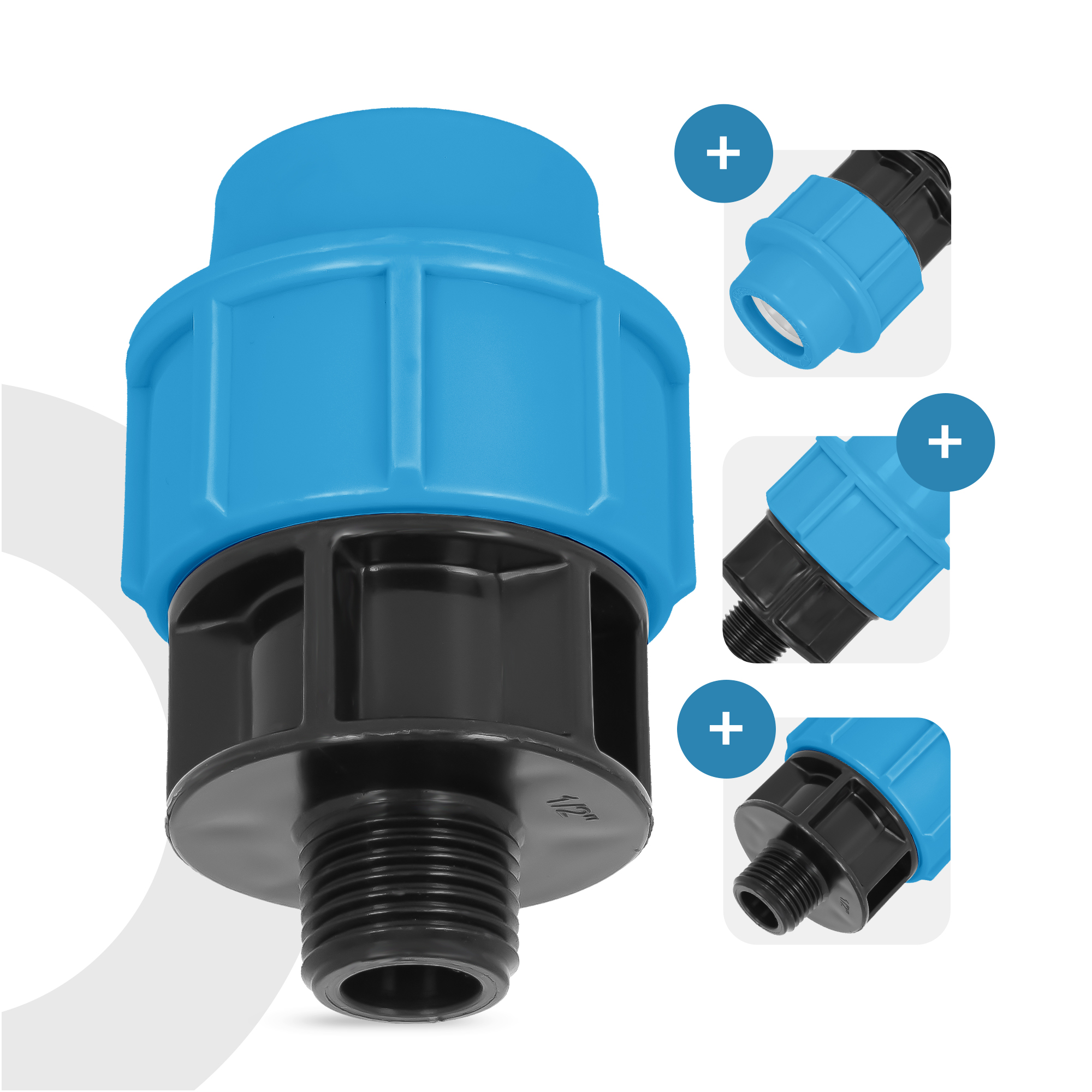 Złączka PE to niezbędny element instalacji wodnych oraz nawadniających. Produkt jest wyjątkowo uniwersalny, dzięki czemu można montować go zarówno w systemach naziemnych, jak i podziemnych.