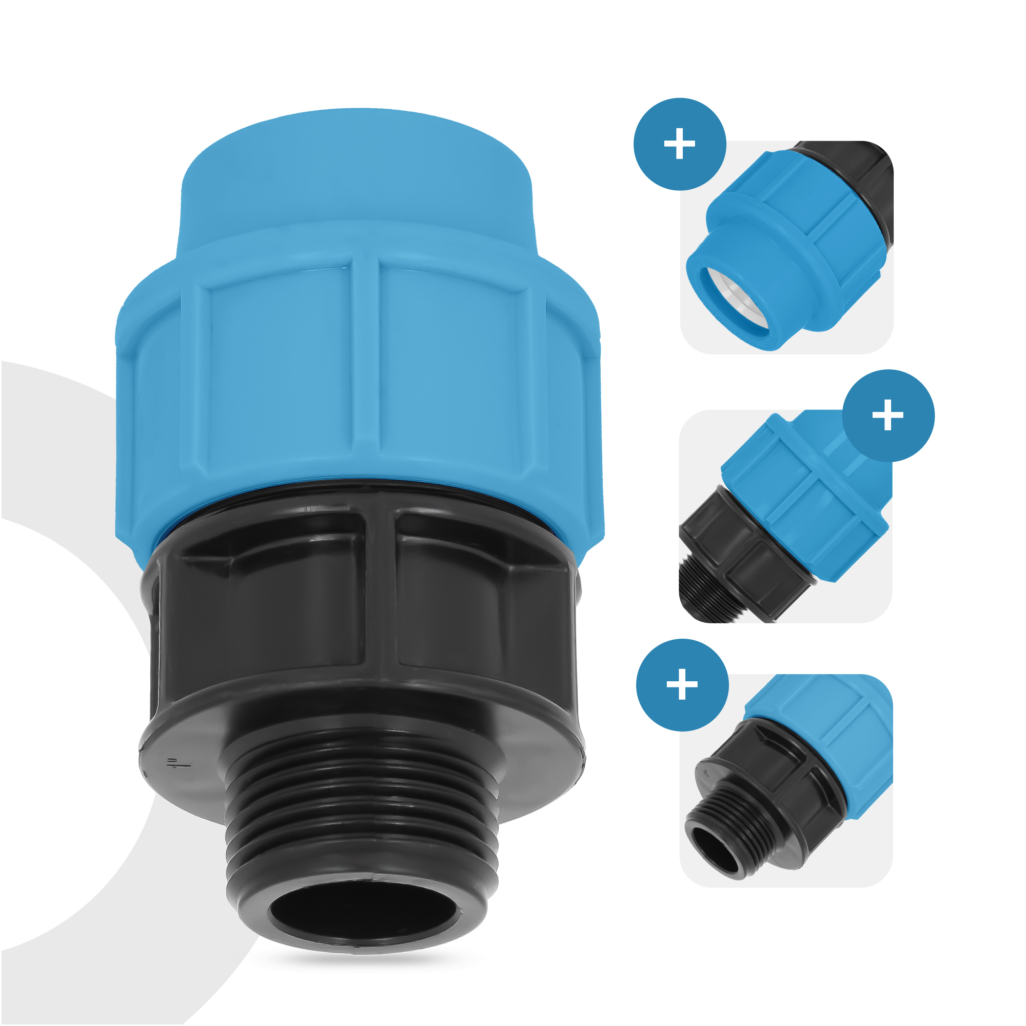 Złączka PE to niezbędny element instalacji wodnych oraz nawadniających. Produkt jest wyjątkowo uniwersalny, dzięki czemu można montować go zarówno w systemach naziemnych, jak i podziemnych.