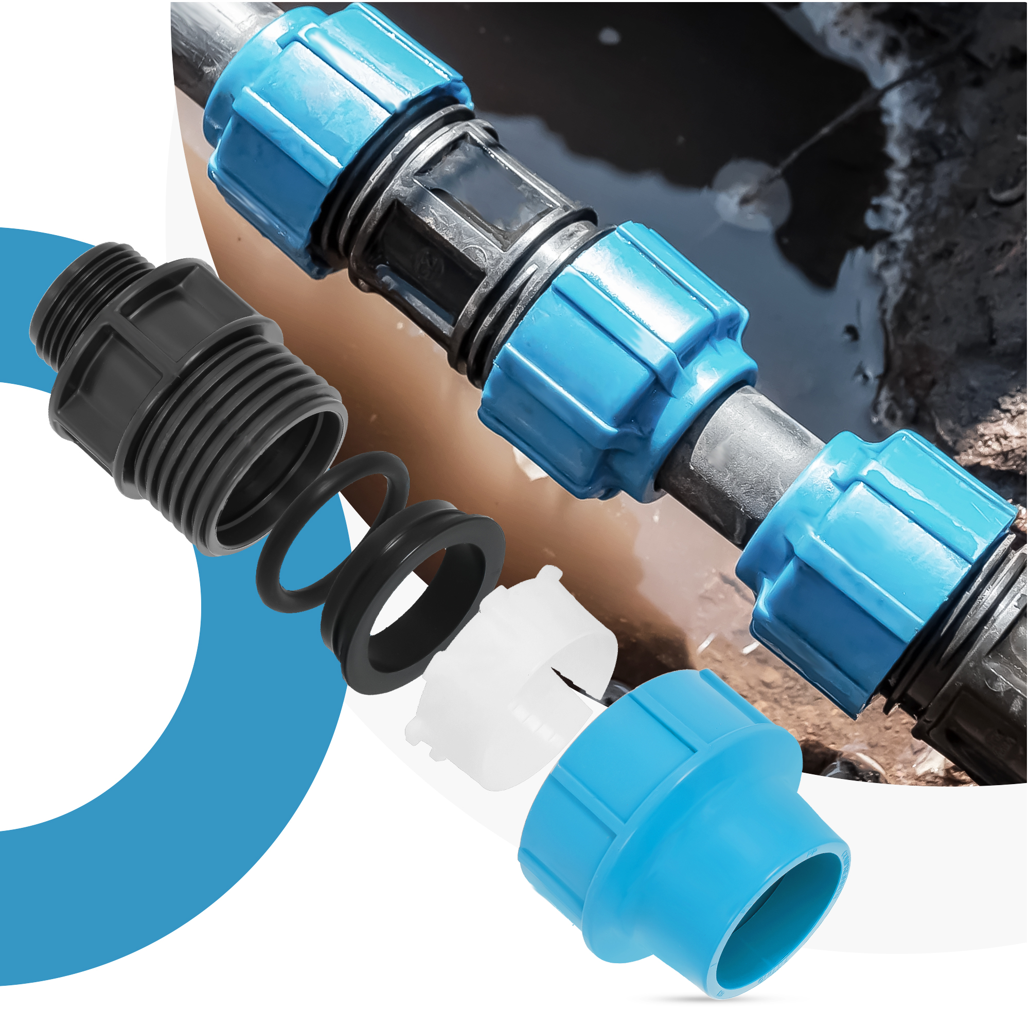 Skręcana konstrukcja elementu sprawia, że jego montaż jest wyjątkowo łatwy. Zaletą złączek PE jest ich poręczny kształt i niewielka waga. Dzięki temu instalacja jest bezproblemowa i nie wymaga użycia specjalistycznych narzędzi. Wystarczy zacisnąć pierścień na rurze, aby uzyskać szczelne połączenie.