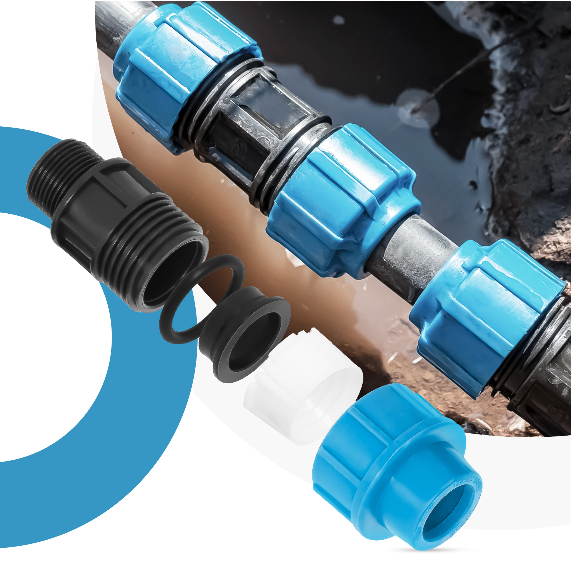 Skręcana konstrukcja elementu sprawia, że jego montaż jest wyjątkowo łatwy. Zaletą złączek PE jest ich poręczny kształt i niewielka waga. Dzięki temu instalacja jest bezproblemowa i nie wymaga użycia specjalistycznych narzędzi. Wystarczy zacisnąć pierścień na rurze, aby uzyskać szczelne połączenie.