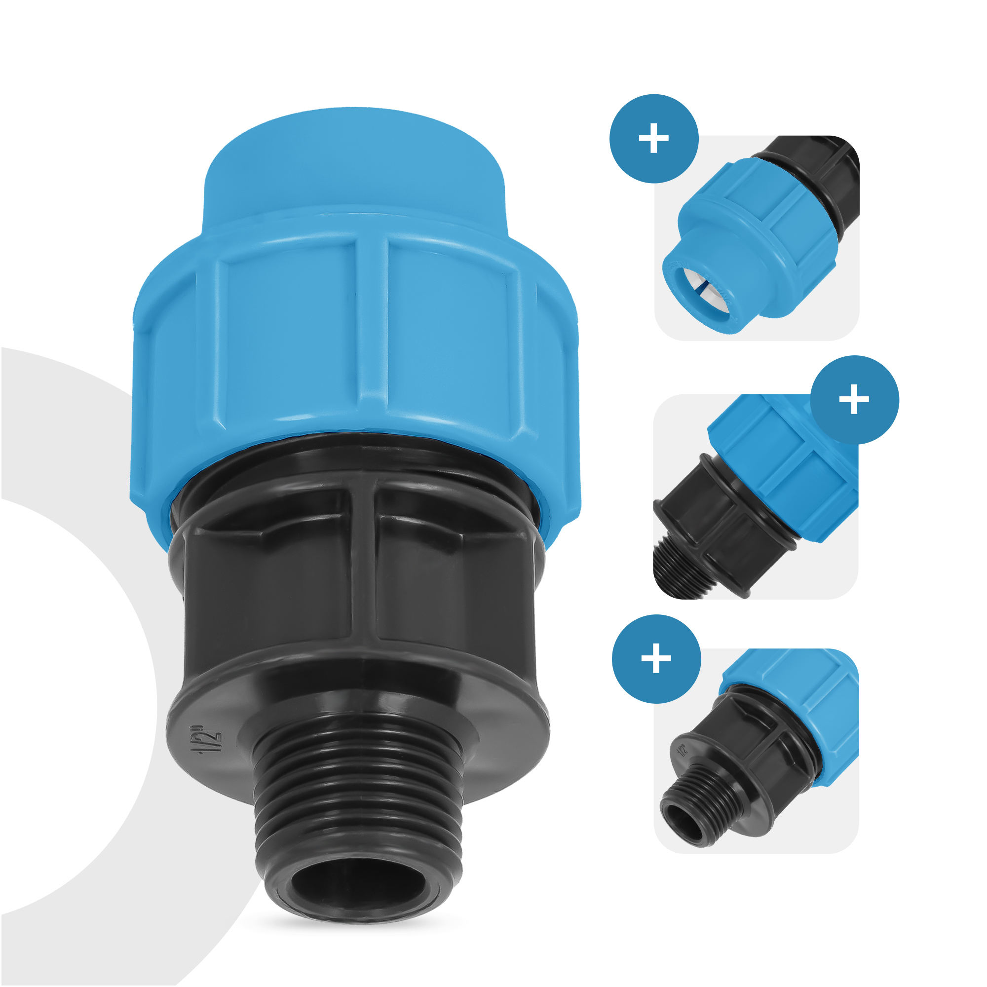 Złączka PE to niezbędny element instalacji wodnych oraz nawadniających. Produkt jest wyjątkowo uniwersalny, dzięki czemu można montować go zarówno w systemach naziemnych, jak i podziemnych.