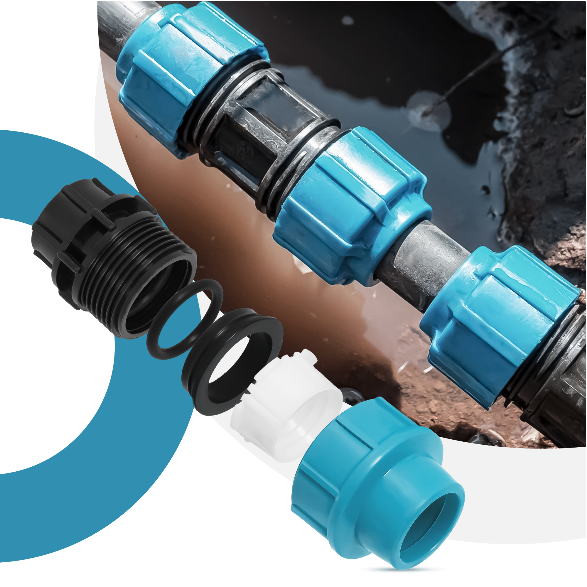 Skręcana konstrukcja elementu sprawia, że jego montaż jest wyjątkowo łatwy. Zaletą złączek PE jest ich poręczny kształt i niewielka waga. Dzięki temu instalacja jest bezproblemowa i nie wymaga użycia specjalistycznych narzędzi. Wystarczy zacisnąć pierścień na rurze, aby uzyskać szczelne połączenie.