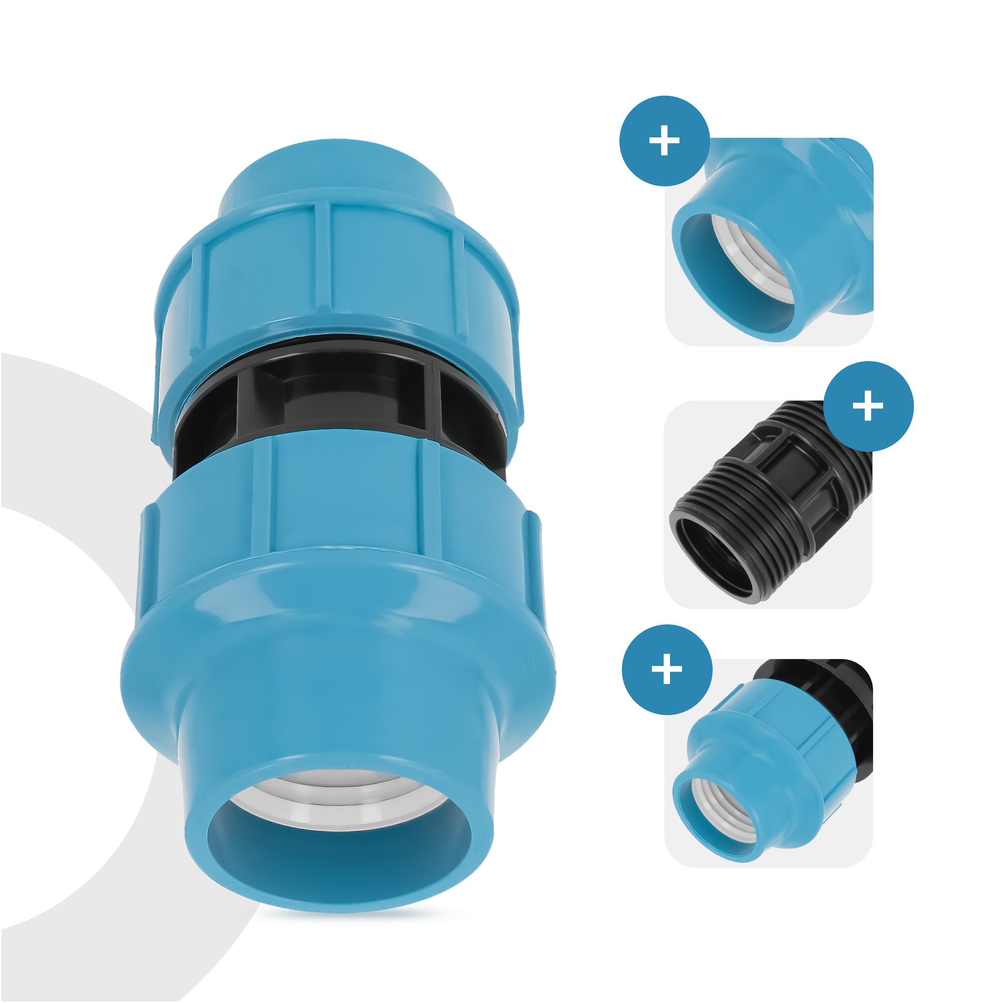 Złączka PE to niezbędny element instalacji wodnych oraz nawadniających. Produkt jest wyjątkowo uniwersalny, dzięki czemu można montować go zarówno w systemach naziemnych, jak i podziemnych.