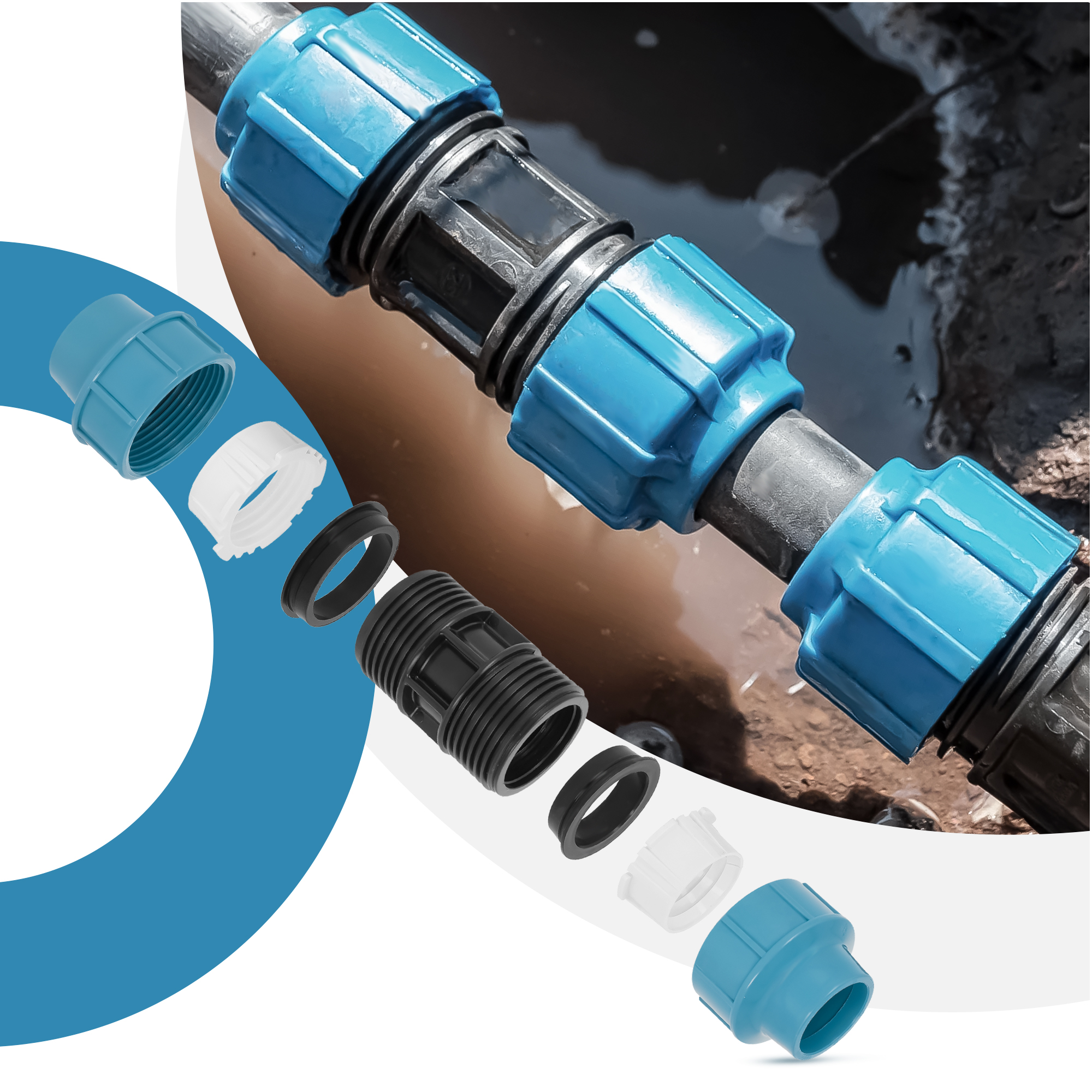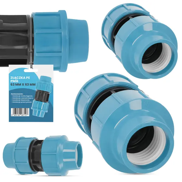 Skręcana konstrukcja elementu sprawia, że jego montaż jest wyjątkowo łatwy. Zaletą złączek PE jest ich poręczny kształt i niewielka waga. Dzięki temu instalacja jest bezproblemowa i nie wymaga użycia specjalistycznych narzędzi. Wystarczy zacisnąć pierścień na rurze, aby uzyskać szczelne połączenie.