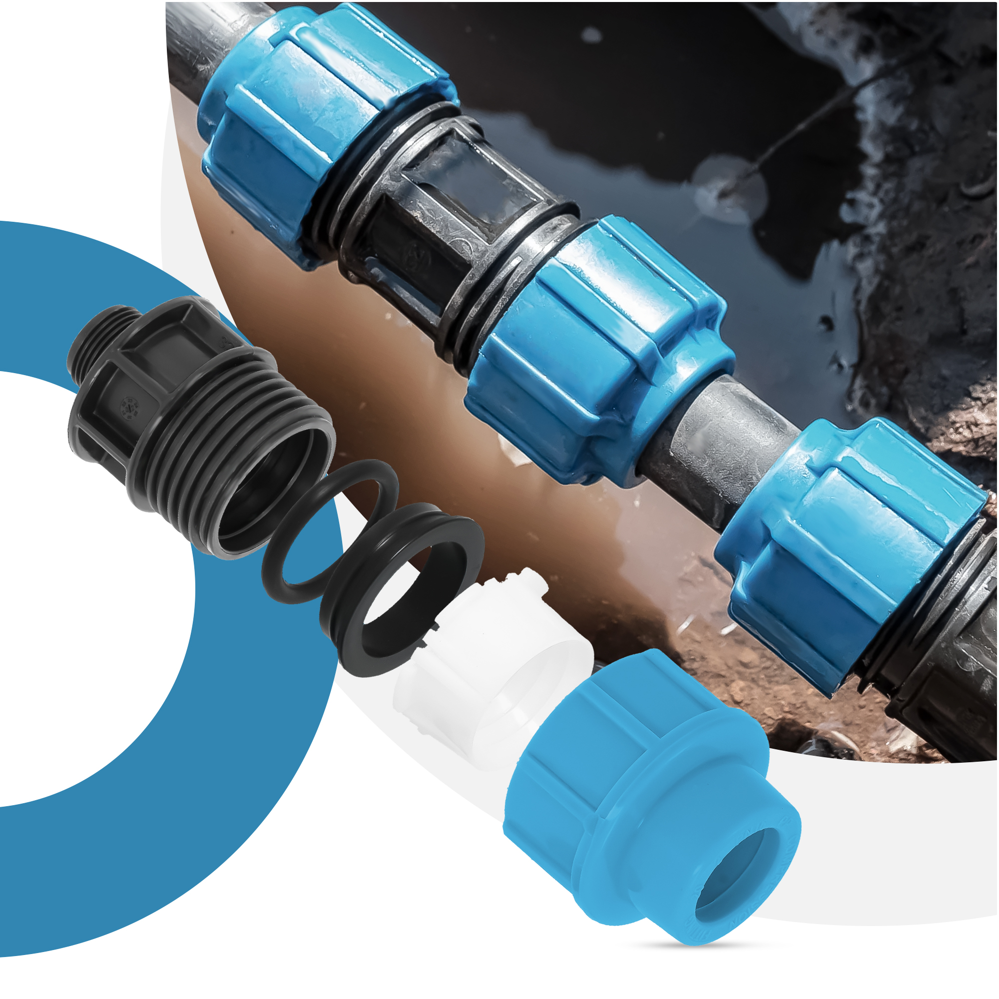 Skręcana konstrukcja elementu sprawia, że jego montaż jest wyjątkowo łatwy. Zaletą złączek PE jest ich poręczny kształt i niewielka waga. Dzięki temu instalacja jest bezproblemowa i nie wymaga użycia specjalistycznych narzędzi. Wystarczy zacisnąć pierścień na rurze, aby uzyskać szczelne połączenie.