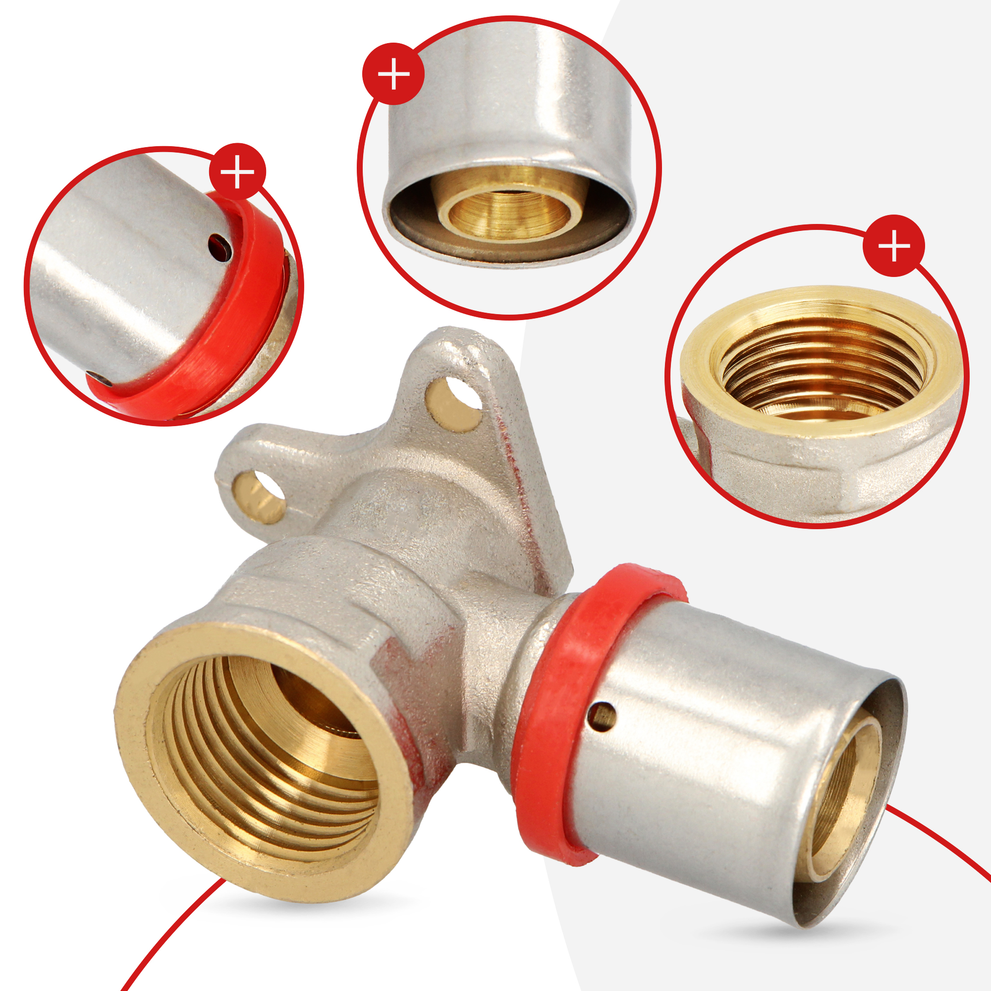Potrzebujesz dostosować system rurociągu do układu pomieszczenia? Oprócz zwykłych złączek przyda Ci się także kolano zaprasowywane PEX z wieszakiem. Dzięki niemu przymocujesz element do ściany i uzyskasz praktyczne połączenie.