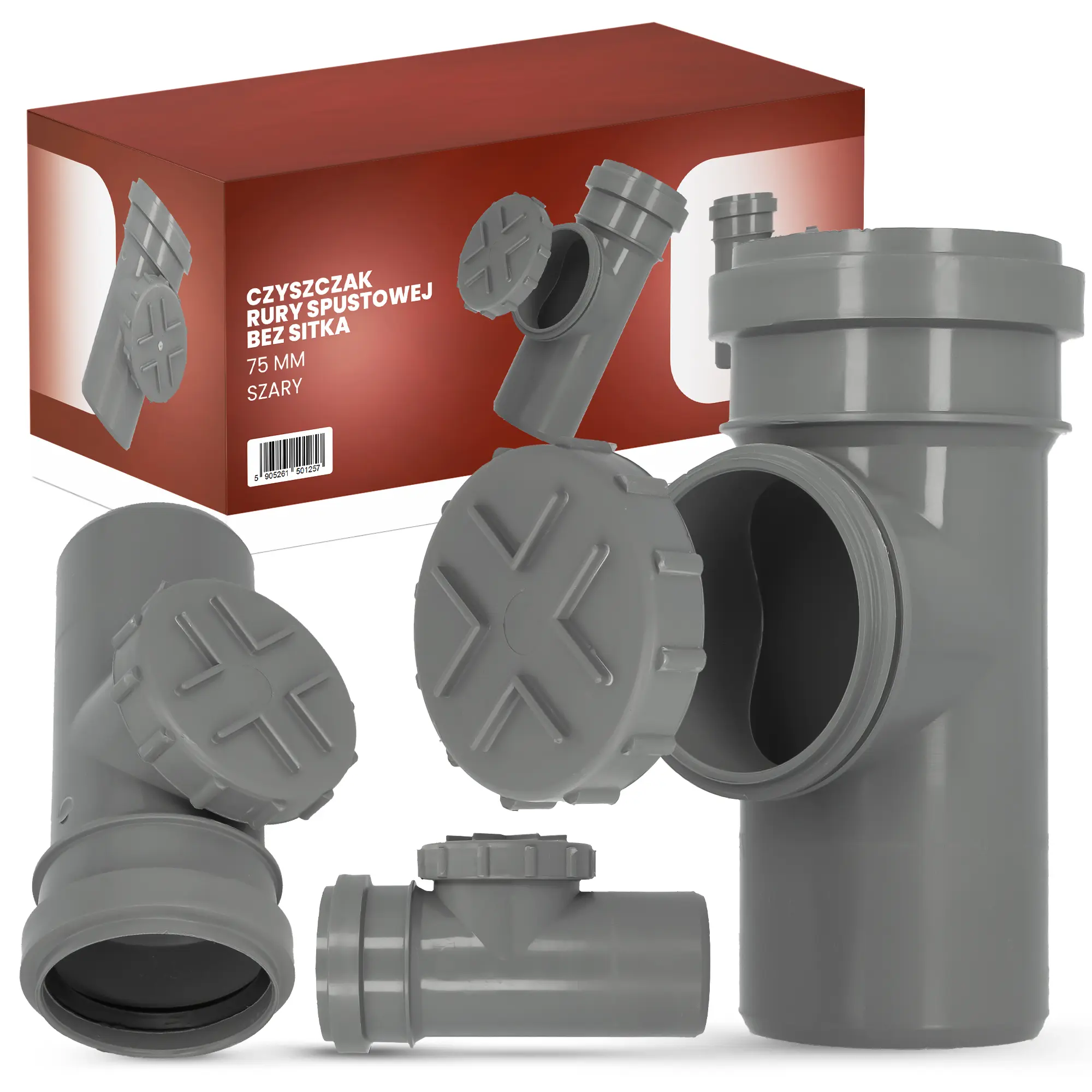 Czyszczak rury spustowej bez sitka 75 mm szary
