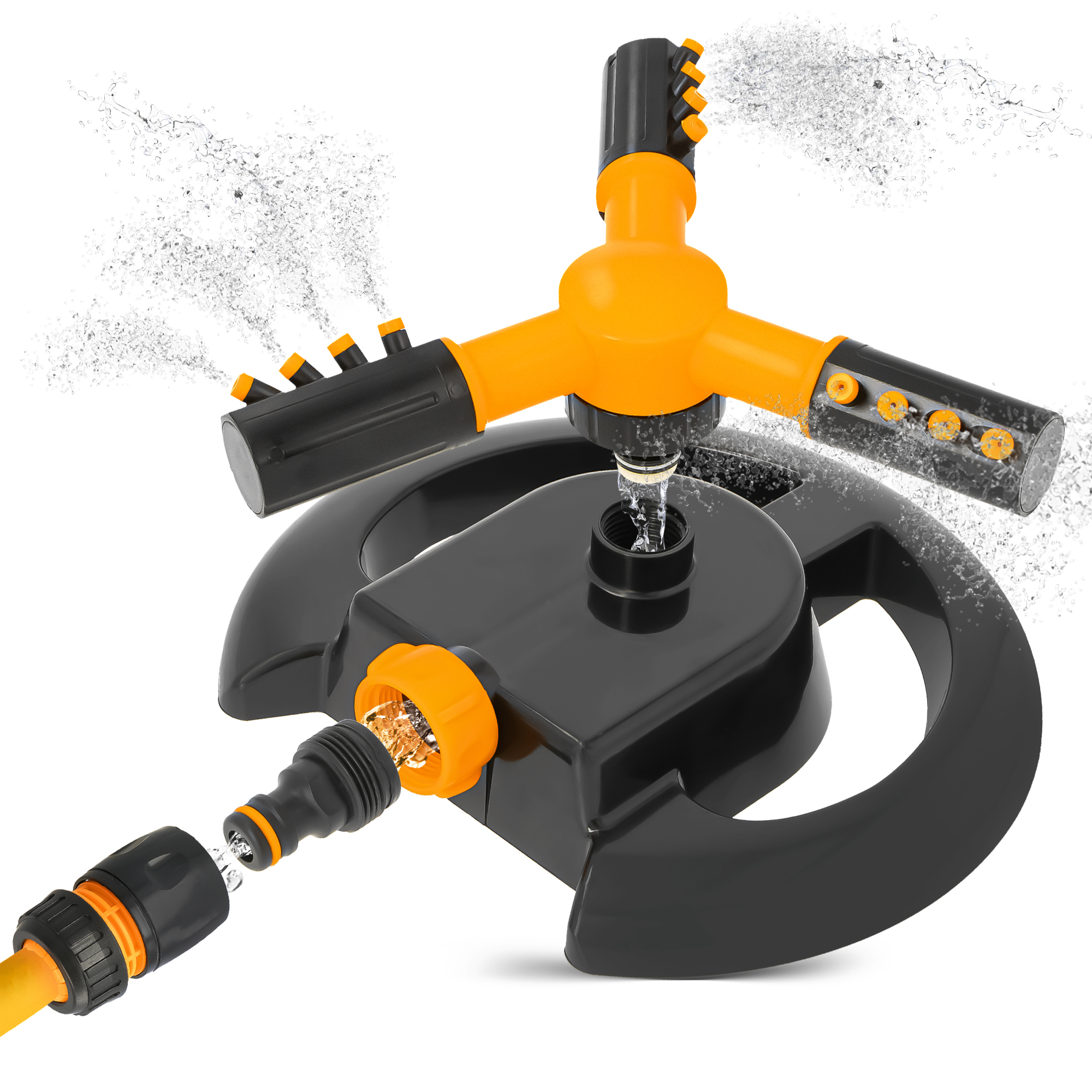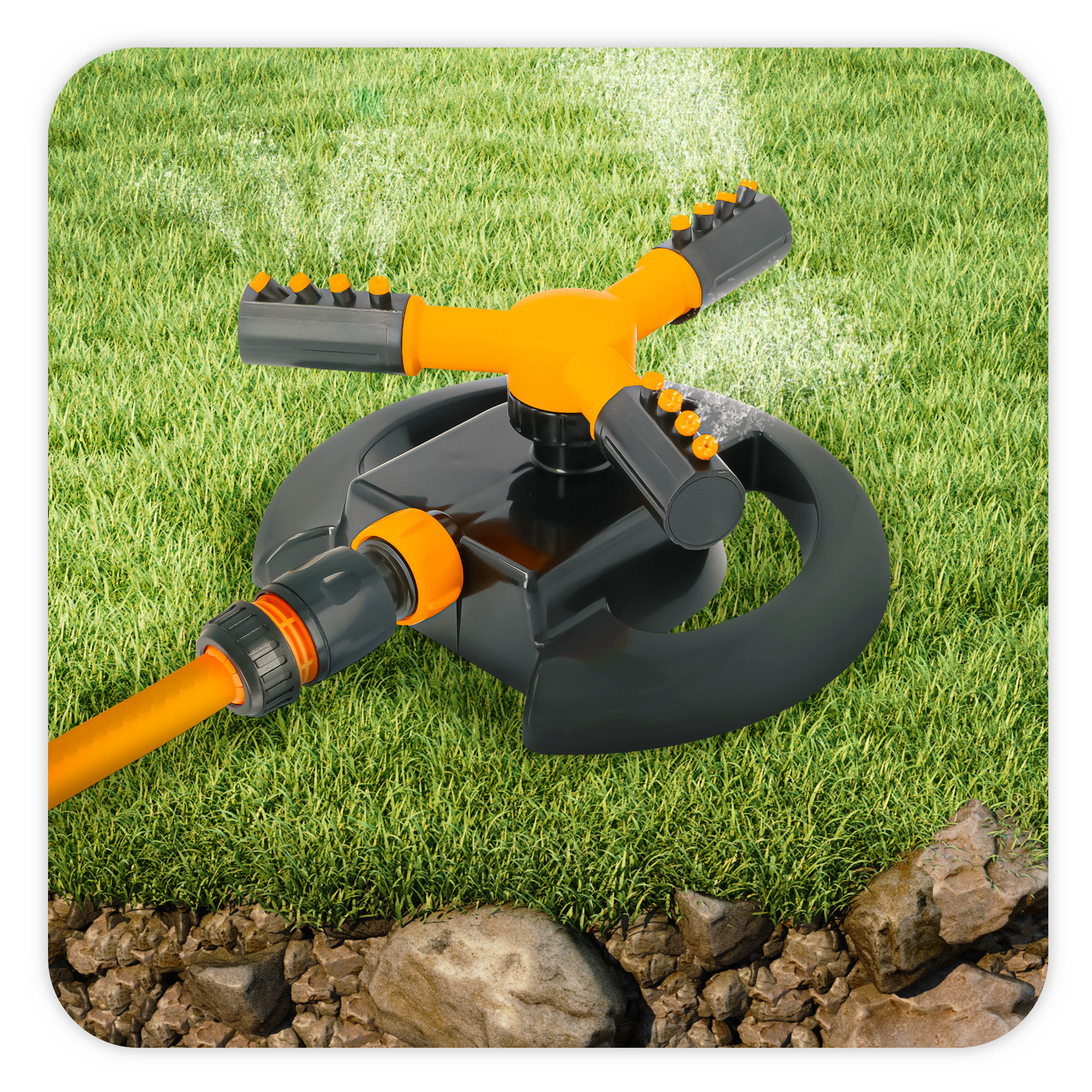 Wykorzystanie trójramiennego zraszacza obrotowego znacznie skraca czas podlewania roślin. Eliminuje także konieczność korzystania z konewki czy węża ogrodowego. Poza czasem oszczędzisz więc sporo energii.