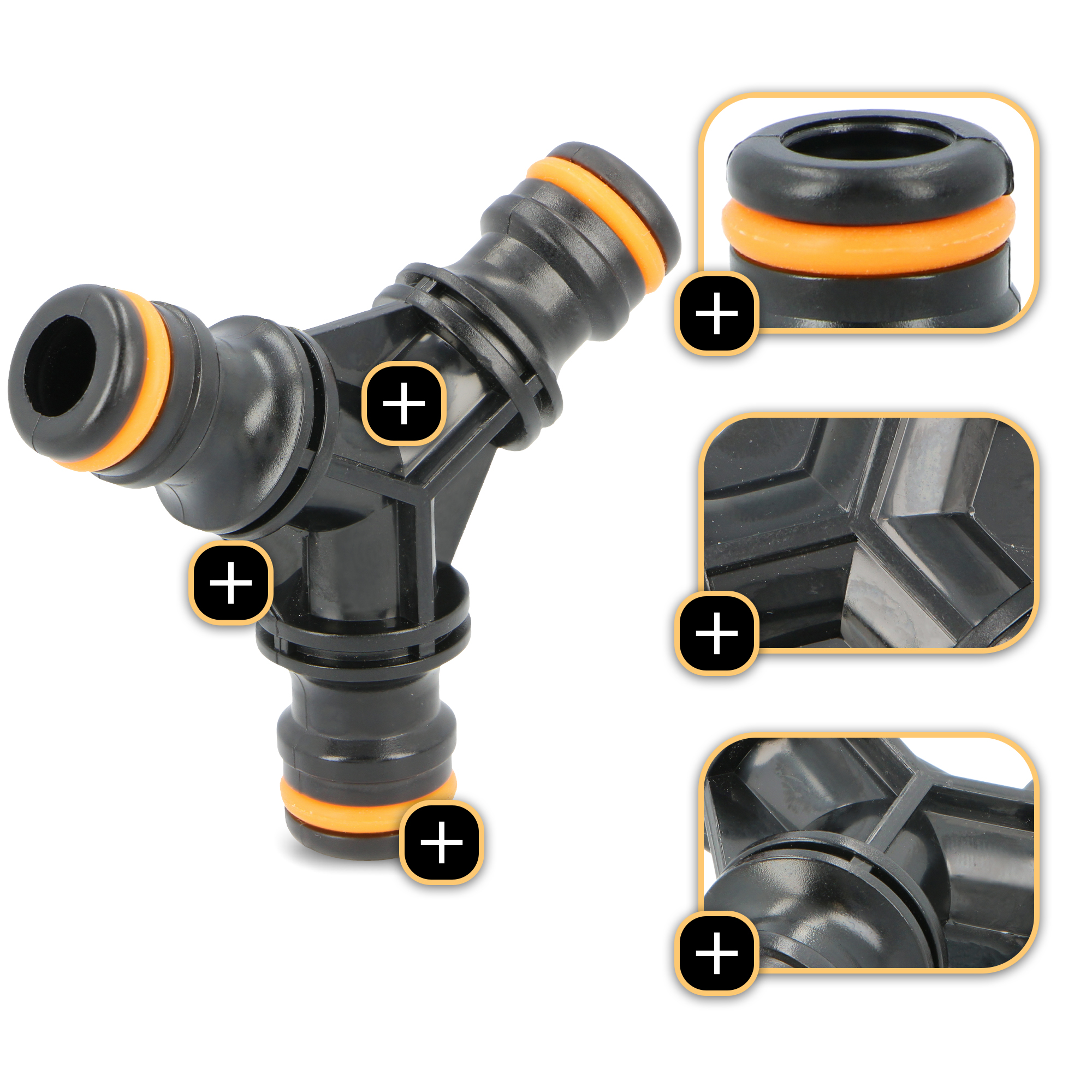 Trójnik jest jednym z podstawowych produktów, które wykorzystuje się do rozbudowy ogrodowych systemów nawadniających i zraszających. Dzięki temu elementowi można bez problemu stworzyć praktyczne rozgałęzienie. Specjalna konstrukcja umożliwia przyłączenie aż 3 węży - zakończonych szybkozłączkami.