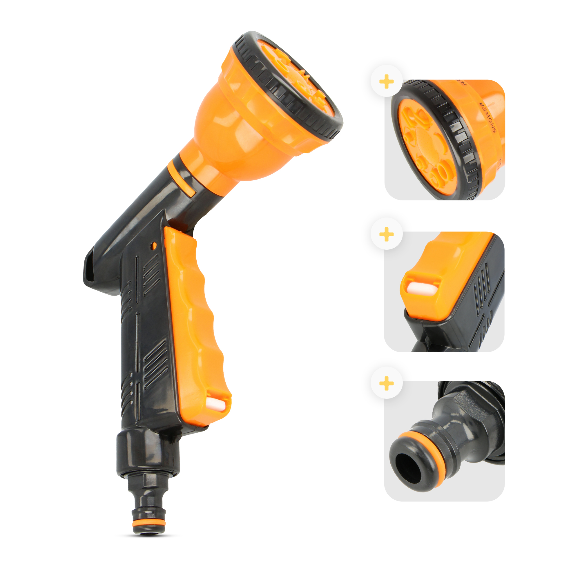 Wielofunkcyjny pistolet zraszający to akcesorium, które pozwoli Ci zadbać o pielęgnację roślin i ułatwi wiele prac w ogrodzie. 7 trybów regulacji strumienia sprawia, że dopasujesz jego intensywność do kwiatów, krzewów, upraw warzywnych czy prac porządkowych - mycia narzędzi ogrodowych lub kostki brukowej przed domem.