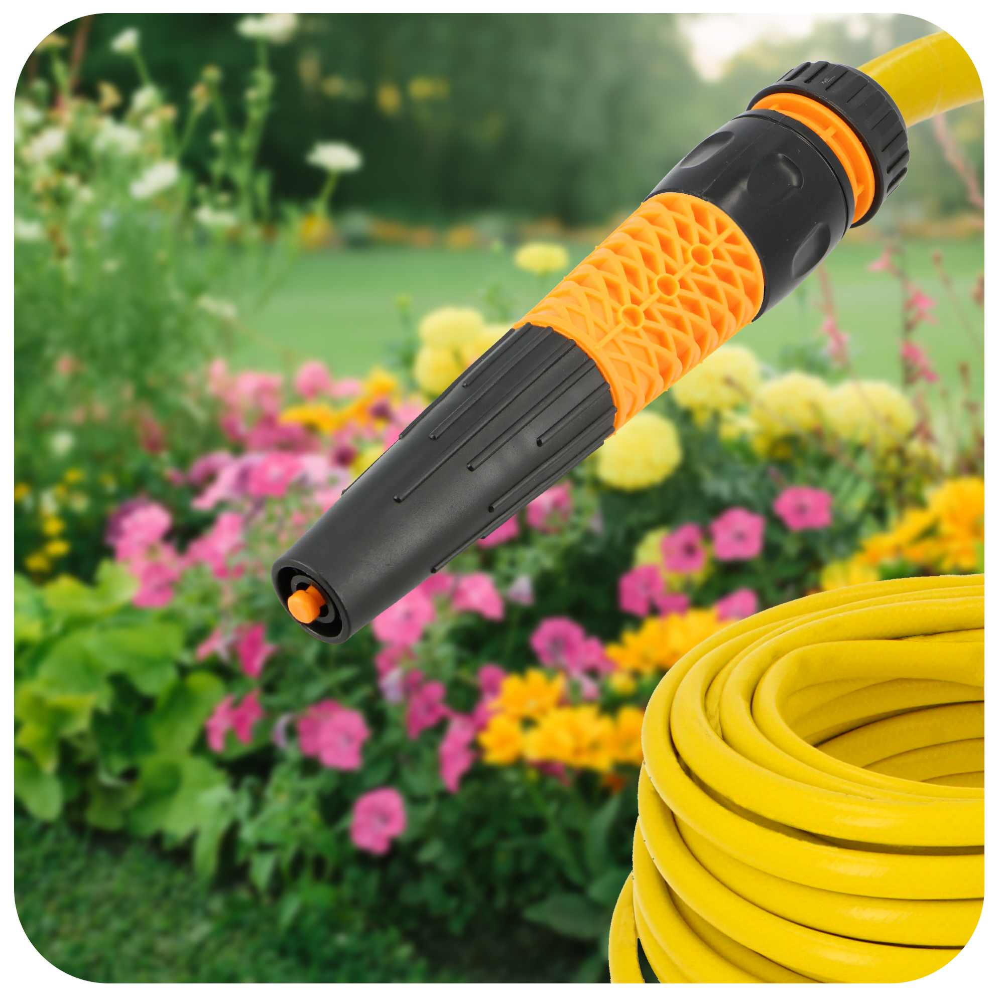 Element wyposażono w opcję bezstopniowej regulacji - dzięki niej możesz płynnie przejść od strumienia punktowego do rozproszonej mżawki. W ten sposób bez problemu dopasujesz strumień do konkretnej rośliny czy wykonywanego zadania.