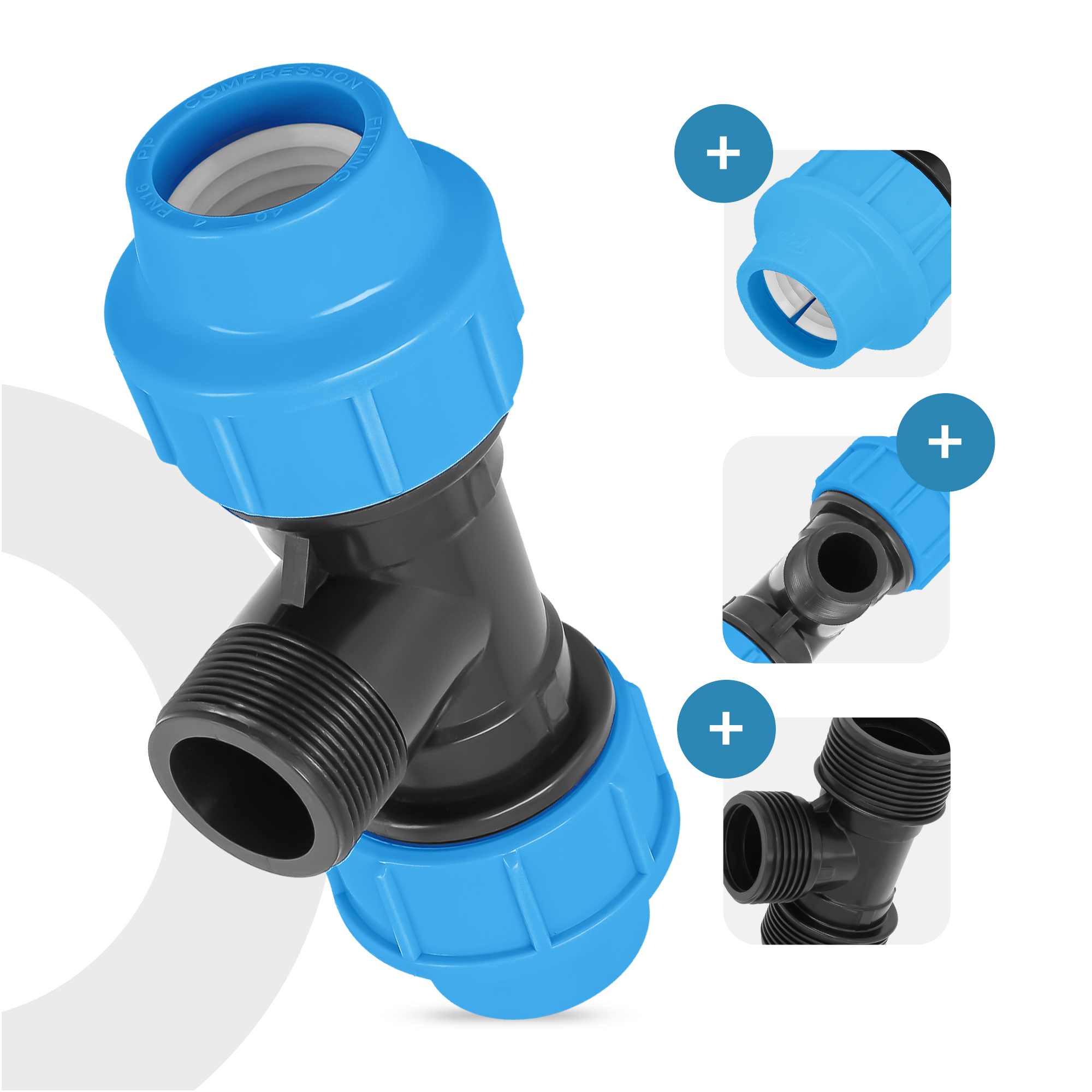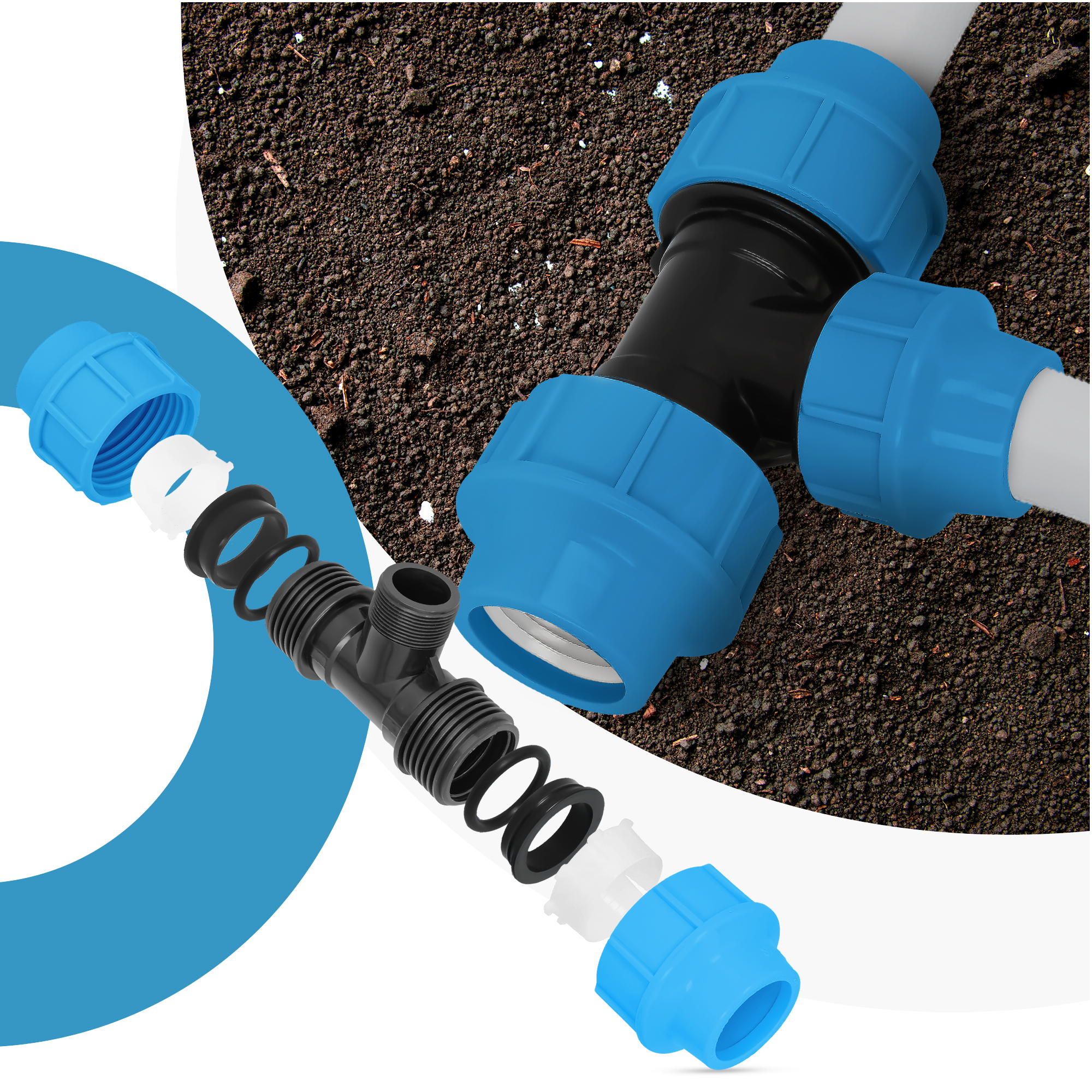 Trójnik PE to złączka wykorzystywana w systemach wodnych i nawadniających. Element ten ma wyjątkowo uniwersalne zastosowanie, co sprawia, że wykorzystuje się go w instalacjach naziemnych i podziemnych.