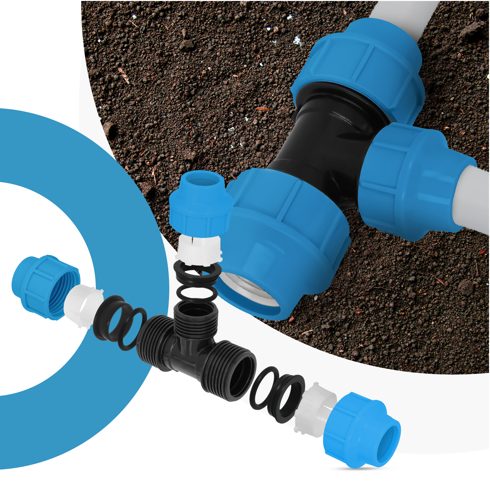 Trójnik PE to złączka wykorzystywana w systemach wodnych i nawadniających. Element ten ma wyjątkowo uniwersalne zastosowanie, co sprawia, że wykorzystuje się go w instalacjach naziemnych i podziemnych.