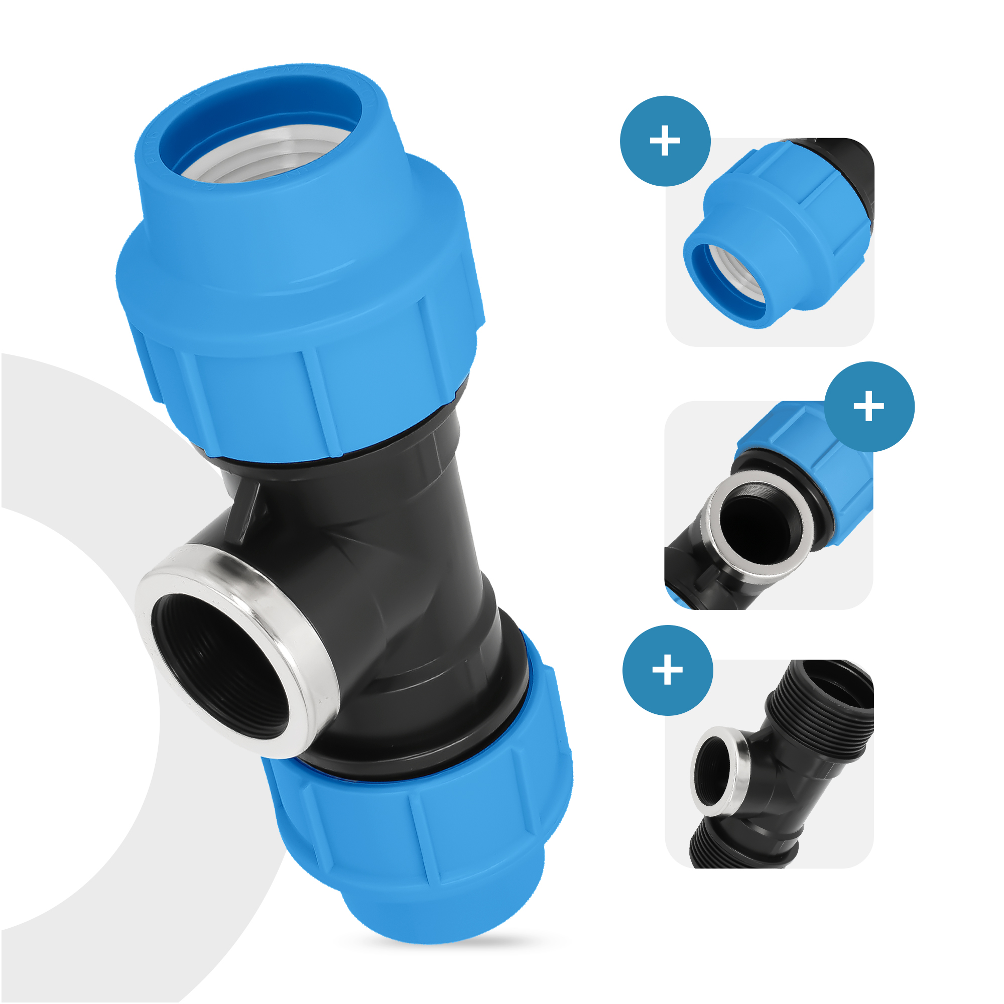 Trójnik PE to złączka wykorzystywana w systemach wodnych i nawadniających. Element ten ma wyjątkowo uniwersalne zastosowanie, co sprawia, że wykorzystuje się go w instalacjach naziemnych i podziemnych.