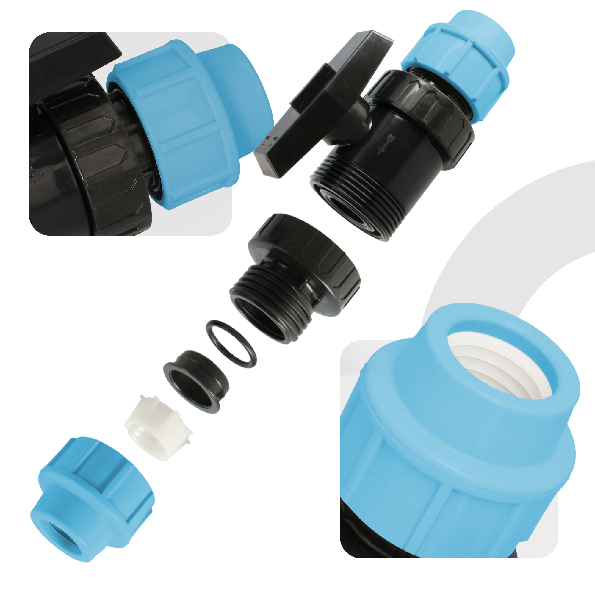Zawór jest bardzo łatwy w instalacji. Aby połączyć go z rurą, wystarczy, że wykorzystasz wbudowany pierścień zaciskowy. Po dokręceniu nakrętki połączenie jest szczelne i wolne od przecieków.