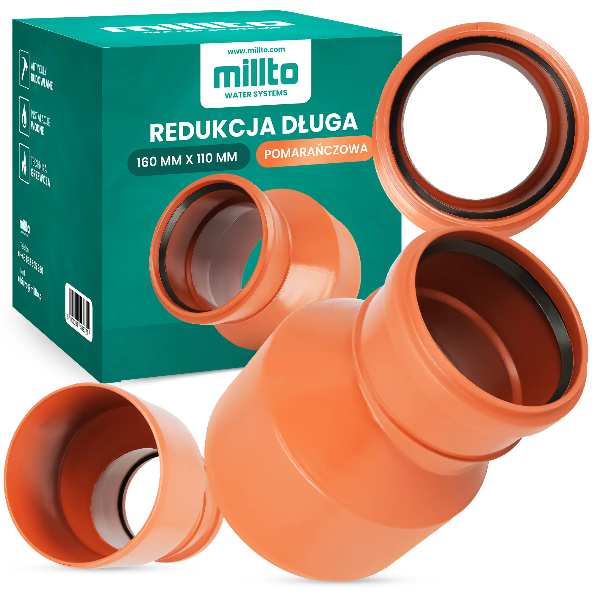 Element jest mocny i zawiera wewnętrzną uszczelkę. Dzięki temu uzyskane połączenie jest trwałe i odporne na przeciekanie. Redukcja jest uniwersalna, dlatego sprawdzi się w przypadku różnego rodzaju rur i przewodów stosowanych w kanalizacji.