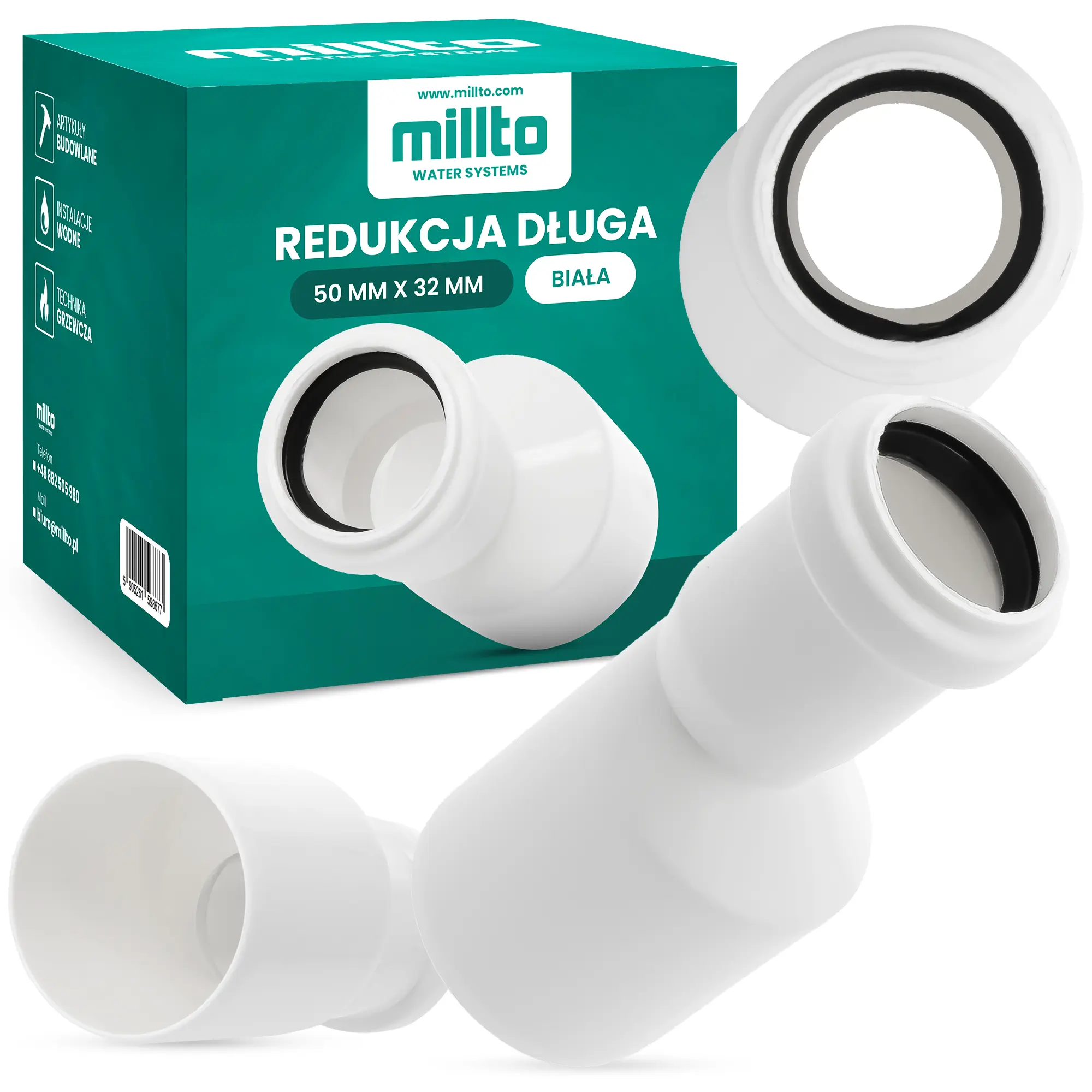 Redukcja długa 50 mm x 32 mm biała