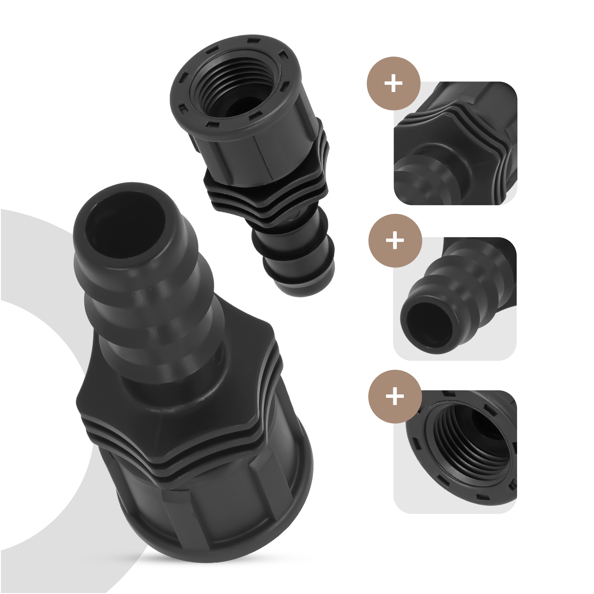 • SZCZELNE POŁĄCZENIE - konstrukcja złączki chroni instalację nawadniającą od przecieków.