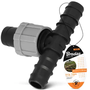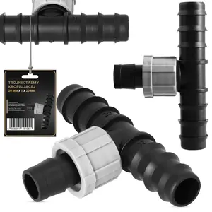 Element został zaprojektowany specjalnie do taśm kroplujących. To zapewnia dokładne dopasowanie, a uzyskane połączenie jest odporne na przeciekanie. Skręcane nakładki na gwincie zapobiegają wyślizgiwaniu się przewodów. Dzięki temu system działa bez zarzutu.