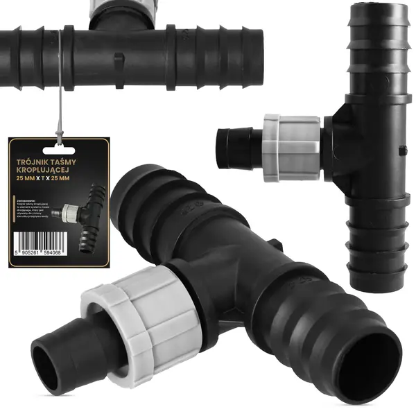 Element został zaprojektowany specjalnie do taśm kroplujących. To zapewnia dokładne dopasowanie, a uzyskane połączenie jest odporne na przeciekanie. Skręcane nakładki na gwincie zapobiegają wyślizgiwaniu się przewodów. Dzięki temu system działa bez zarzutu.