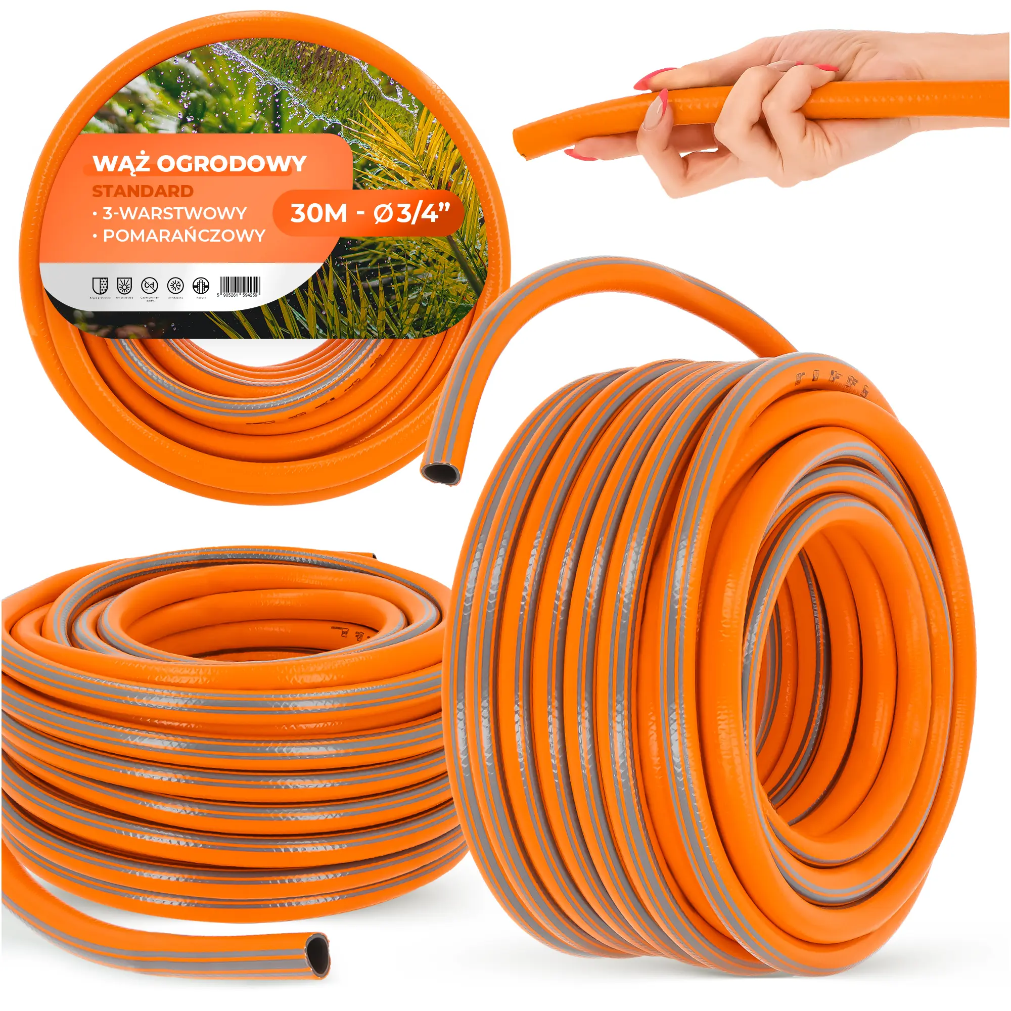 Wąż ogrodowy Standard 3-warstwowy Pomarańczowy 3/4" 30 m