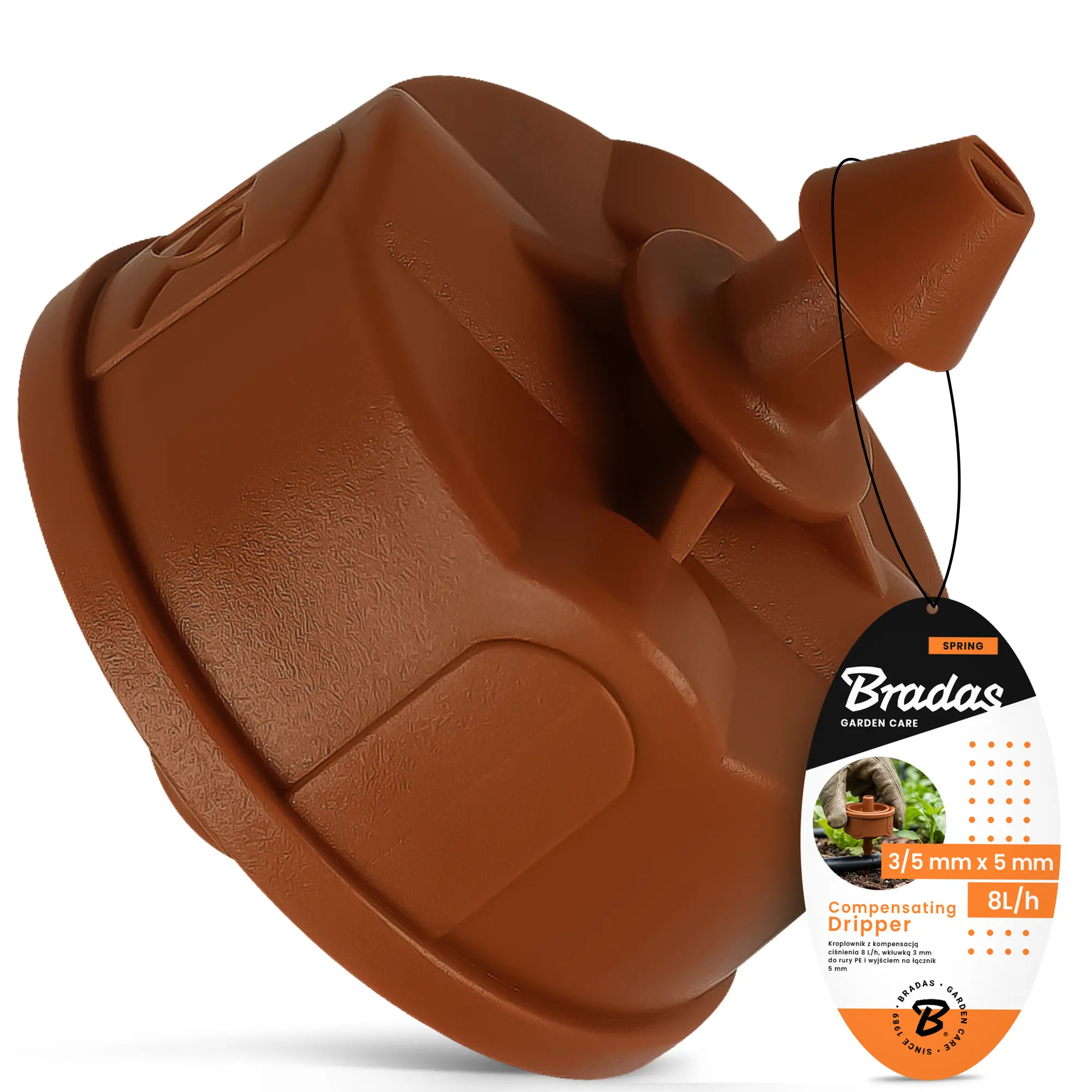 Każdy egzemplarz oferuje stały przepływ, co w połączeniu z odpowiednim ciśnieniem, gdzie zakres stosowania obejmuje Systemy nawadniające, daje stabilne nawodnienie. Wykończenie ma kolor Brązowy, co pozwala na dopasowanie do reszty osprzętu. Ten element jest lekki, ponieważ jego waga to 0,003 kg, a szerokość wynosząca 3 mm | 5 mm ułatwia montaż w zagęszczonych uprawach.