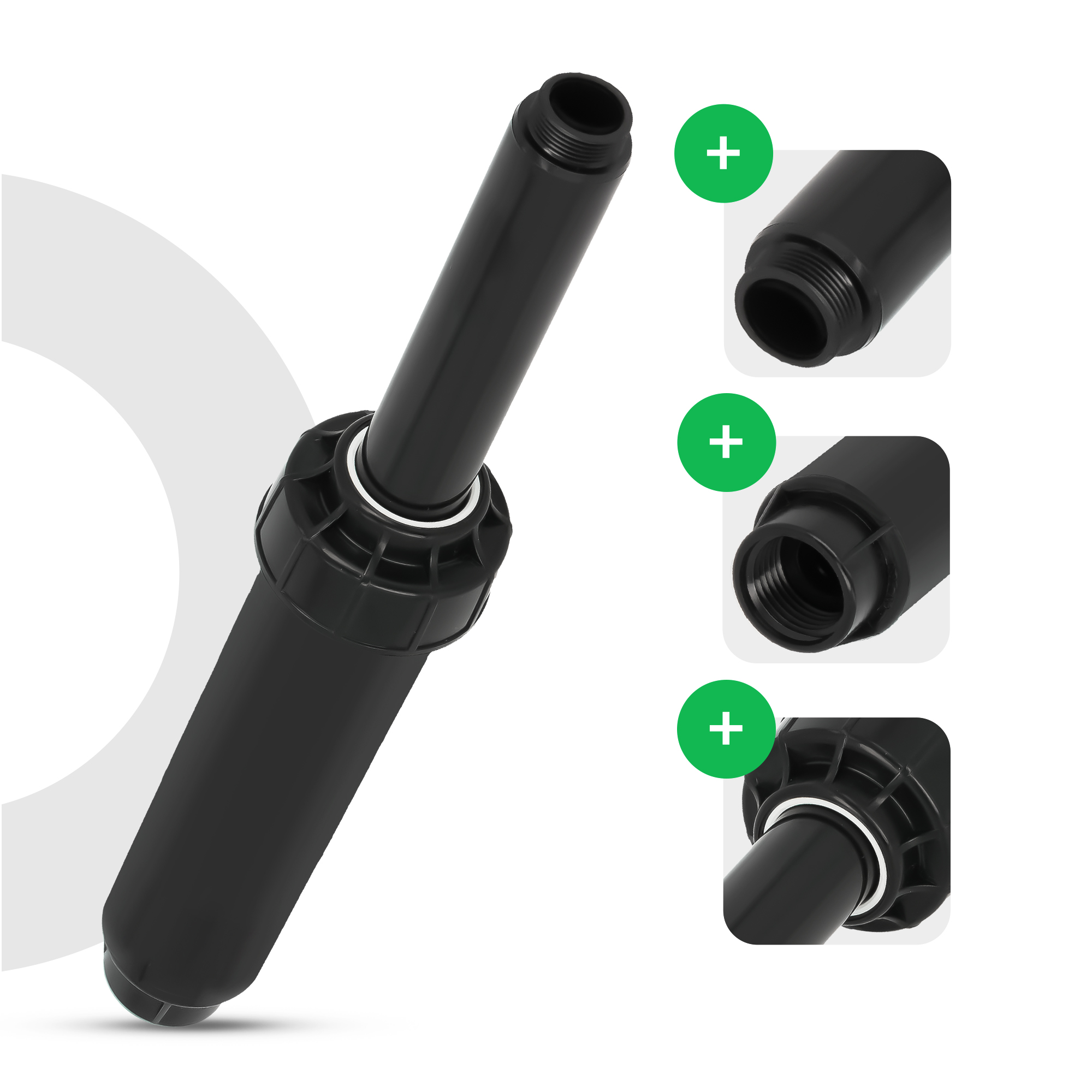• ESTETYCZNY I FUNKCJONALNY - zraszacz w stanie spoczynku chowa się w gruncie, dzięki czemu nie zaburza wystroju ogrodu.