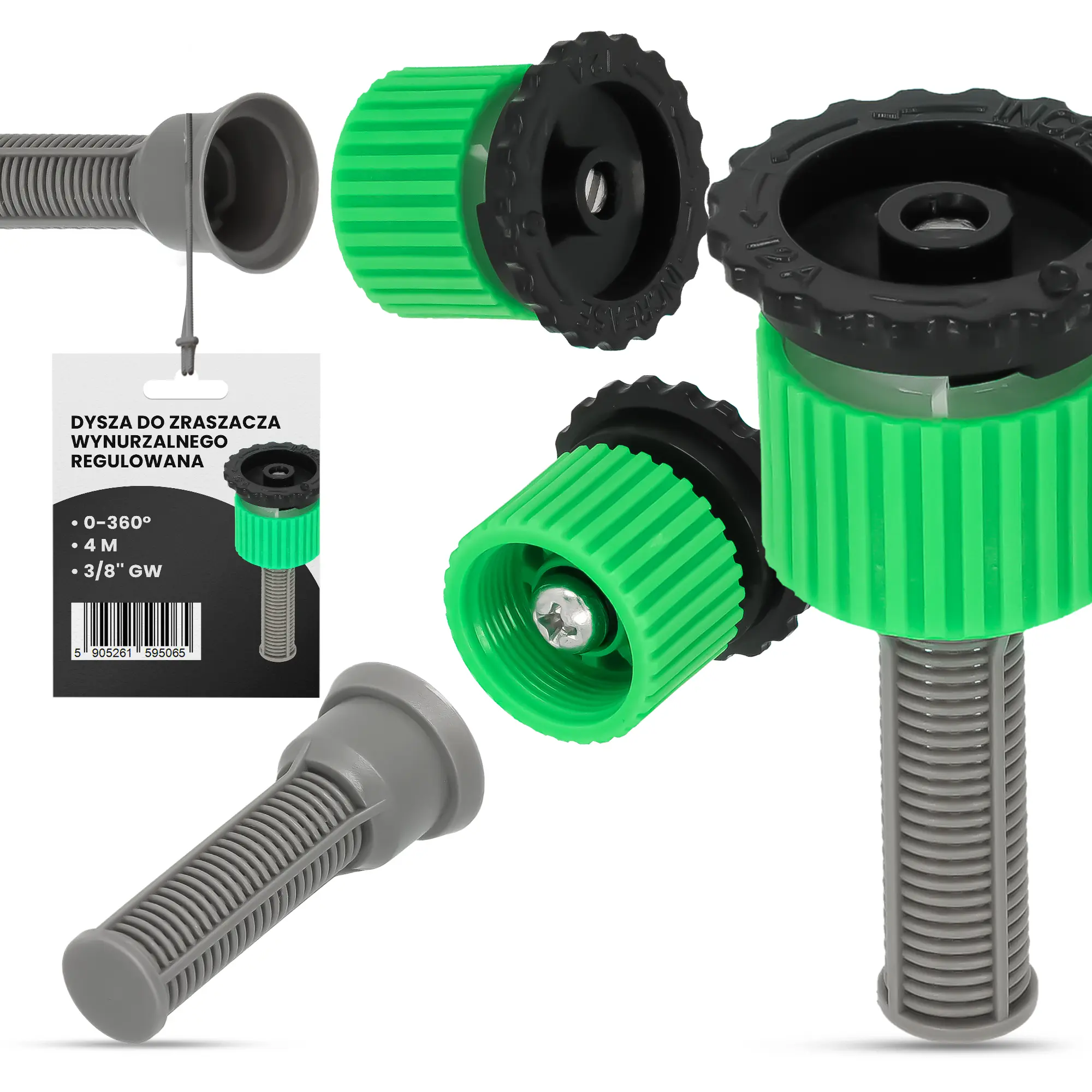 • REGULACJA KĄTA ZRASZANIA - element wyróżnia się regulacją, dzięki której dostosujesz kąt zraszania w zakresie 0-360 stopni.